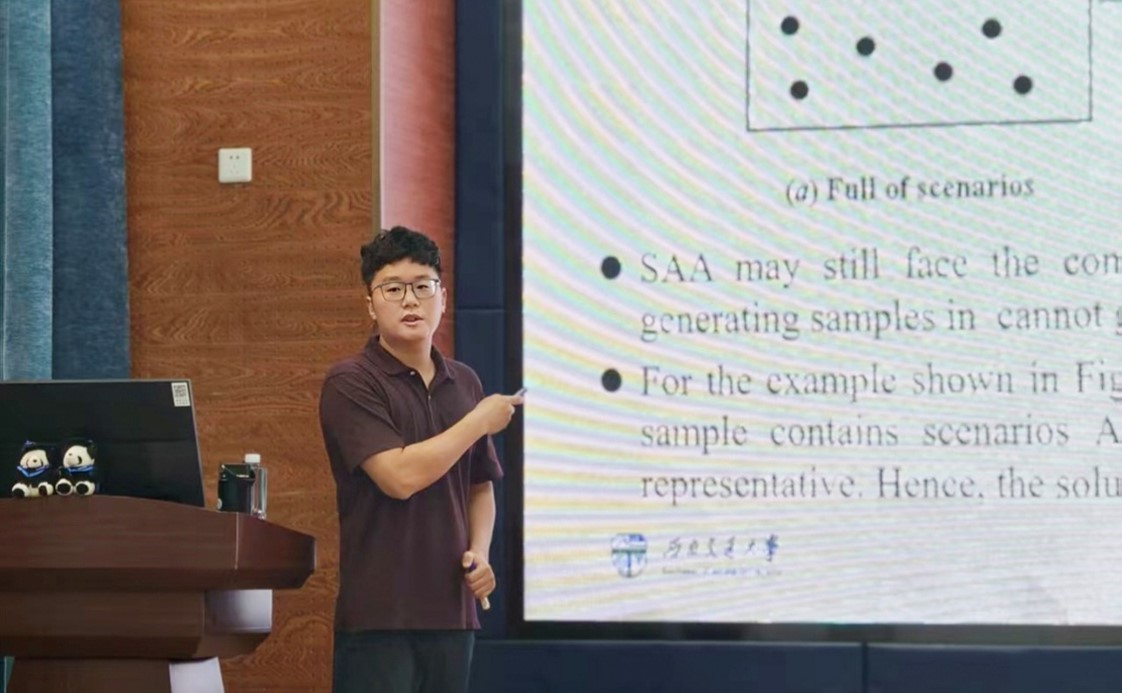 7月8日下午,伟德国际bevictor1946胡少龙老师带来题为《基于情景聚类的优化算法设计——以求解两阶段随机规划模型为例》的精彩讲座。此次讲座聚焦应急物流网络中的选址-库存联合决策问题,运用两阶段随机规划处理不确定性。为克服该规划因情景众多导致的计算难题,讲座重点介绍了结合情景聚类等改进方法,通过聚合相似情景有效提升求解效率。